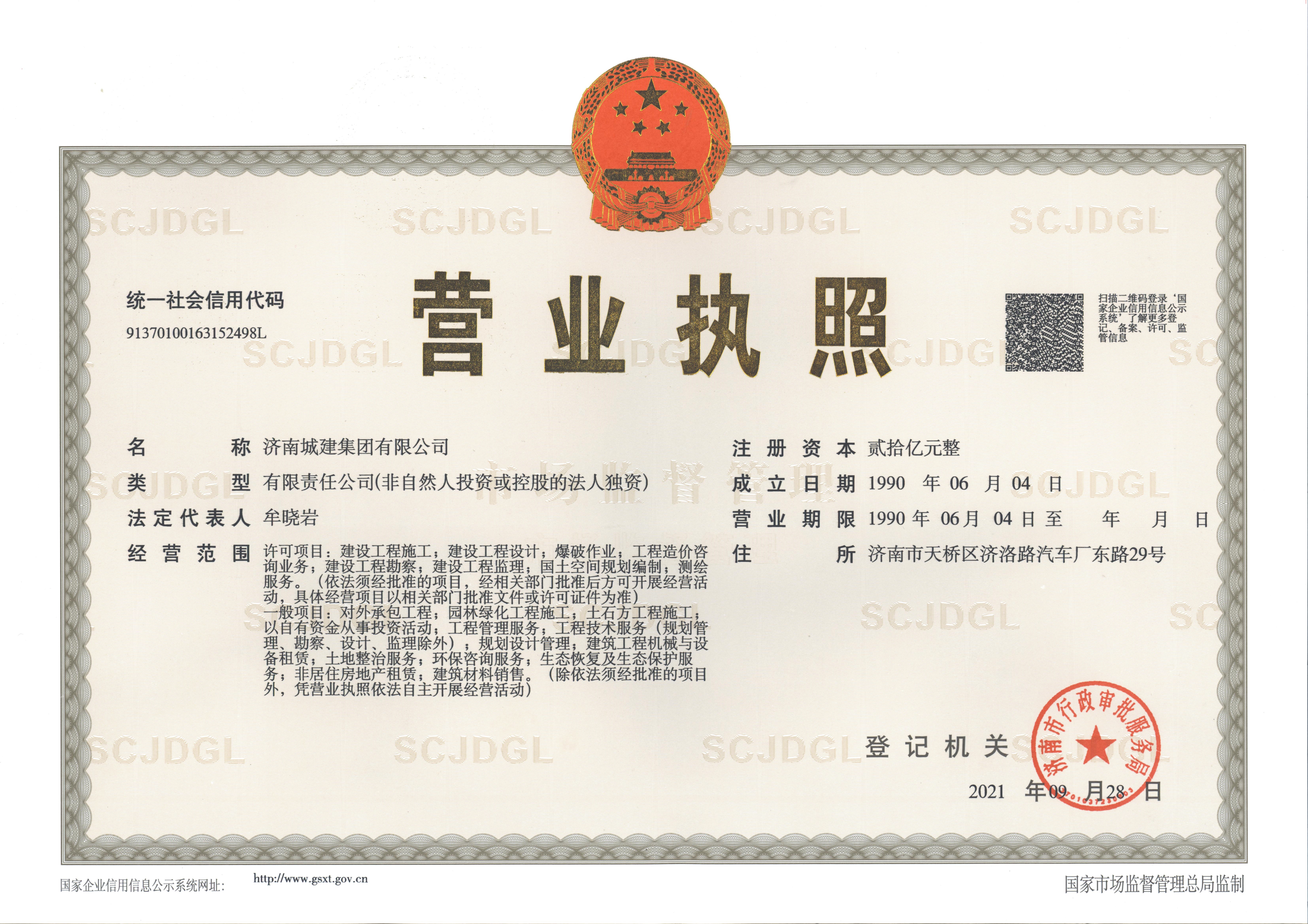 始建于1929年,是具有近百年发展历史的国有大型企业,注册资本金30亿元。拥有市政公用工程施工总承包特级、建筑工程施工总承包壹级、公路工程施工总承包壹级资质和工程设计市政行业甲级、工程设计建筑行业甲级等100余项资质。年施工能力500亿元以上,综合实力位居山东省建筑企业十强、山东省市政行业龙头、全国市政行业前列。