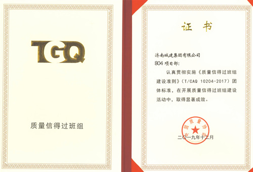 集团804项目部荣获中国质量协会“质量信得过班组”