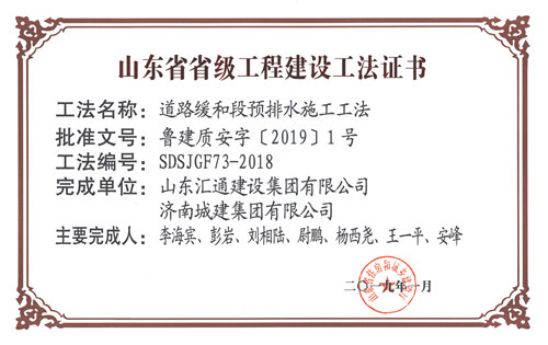 集团“道路缓和段预排水施工工法”被评为山东省省级工程建设工法