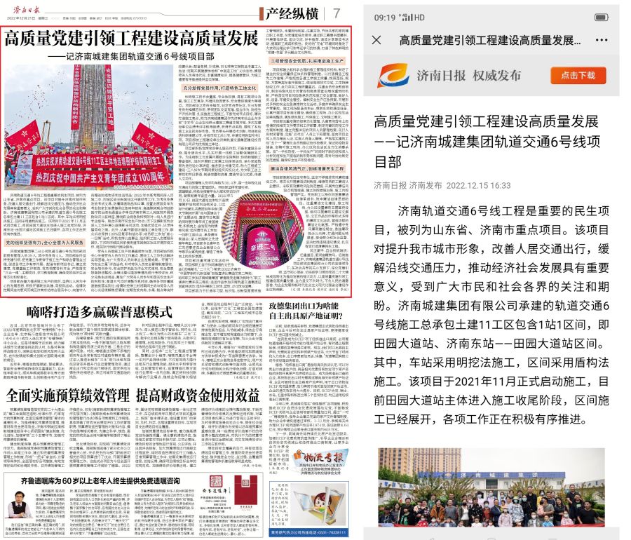 高质量党建引领工程建设高质量发展——《济南日报》报道集团轨道交通6号线项目