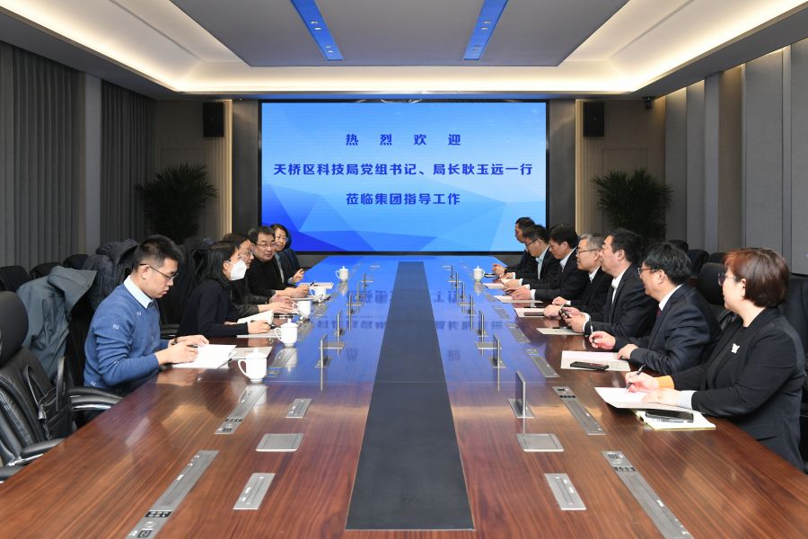 2月8日,济南市天桥区科技局党组书记、局长耿玉远一行到集团调研科技创新工作,并颁发“山东省泰山产业创新领军人才”奖牌。天桥区科技局副局长王寿军、刘颖,集团总工程师许庚,工会主席、总经济师朱相波,副总经理、安全总监马烽参加活动。