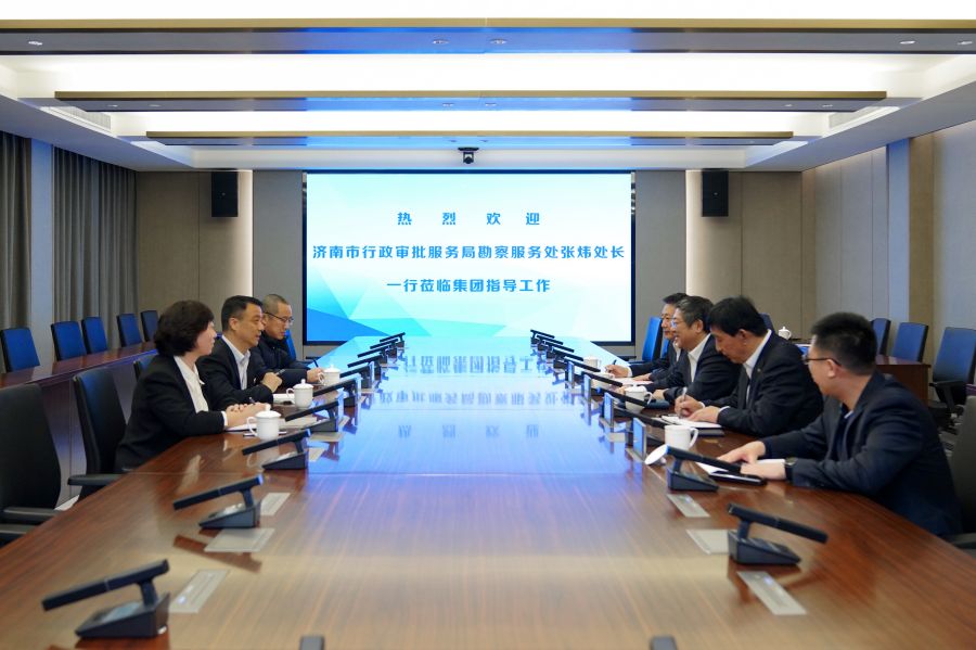 3月17日,济南市行政审批服务局勘察服务处处长张炜一行莅临集团调研指导工作。集团党委书记、董事长、总经理牟晓岩参加活动。