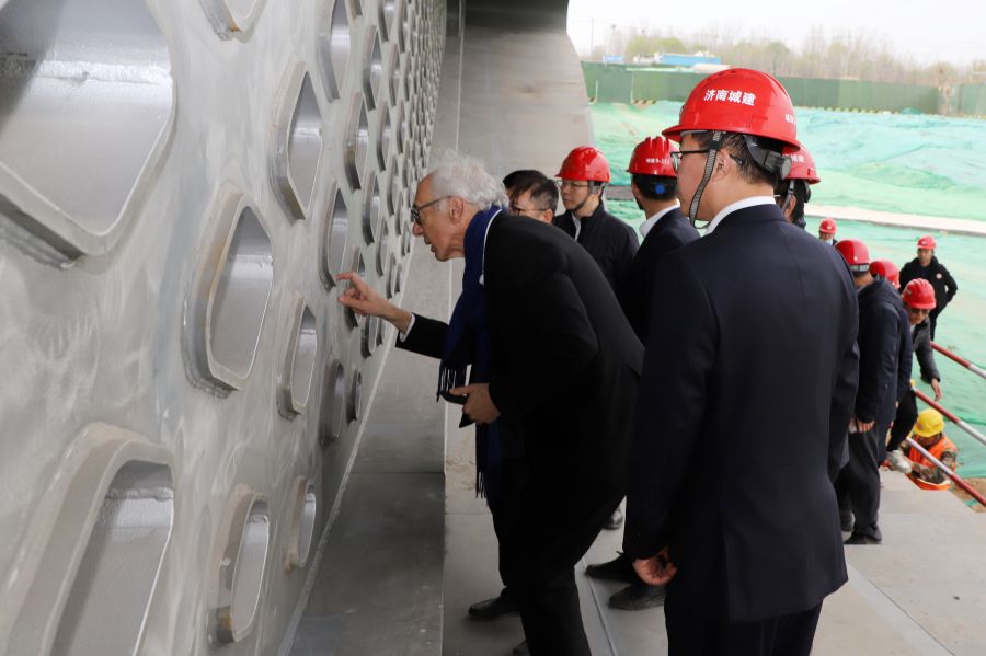 3月17日,法国MARC MIMRAM INGENIERIE S.A.公司总裁马克·米姆拉姆到集团承建的济南新旧动能起步区横二路大寺河桥项目现场察看工程建设情况。MARC MIMRAM INGENIERIE S.A.公司亚洲项目负责人柳成荫,东南大学建筑设计研究院副总经理兼交通规划设计院院长丁建明,集团副总经理史红军参加活动。