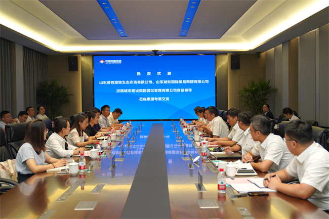 8月16日下午,山东济西湿地生态农场有限公司、山东城蚨国际贸易集团有限公司及济南城市建设集团园区管理有限公司一行到集团考察交流。济西湿地总经理王璐璐,城蚨国际副总经理李峰,集团党委副书记、总经理刘相华等参加活动。
