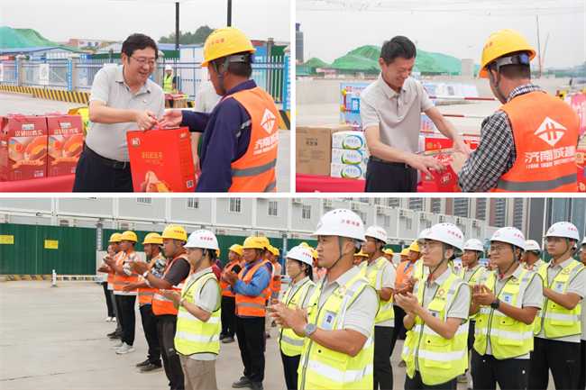 在施工现场,牟晓岩董事长向奋战在施工一线的建设者及家属致以暖心的节日问候和诚挚祝愿,对大家坚守岗位、聚力攻坚表示感谢。他表示,当前正值工程项目施工“黄金期”,工期紧、任务重,广大干部职工发扬“城建铁军”精神,凝心聚力、拼搏奋进,有力推动了工程建设提质增效,助力集团跑出高质量发展“加速度”。希望大家锚定“效益提升年”任务目标不松懈,蹄疾步稳、乘势而上,在保证安全的基础上争分夺秒推进工程项目建设,秉承匠心精神铸造精品工程,以实际行动为加快建设“强新优富美高”新时代社会主义现代化强省会建设作出新的更大贡献!