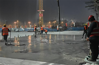 科学指挥,甘于奉献彰显“铁军精神”。浇筑过程中,项目管理人员轮班值守,紧盯现场,对每一道关键工序、每一个重要环节进行严格把控,不放过任何可能影响施工质量的因素。在钢筋特别密集的钢板墙、型钢节点部位,采用“1+1”盯防模式,即1个固定岗+1个流动哨,杜绝漏振情况。同时,考虑到冬季施工的特殊环境,项目部积极落实各项保温措施,从原材料加热、混凝土运输保温到浇筑后的养护,严格遵循冬季施工规范,确保混凝土的施工质量。