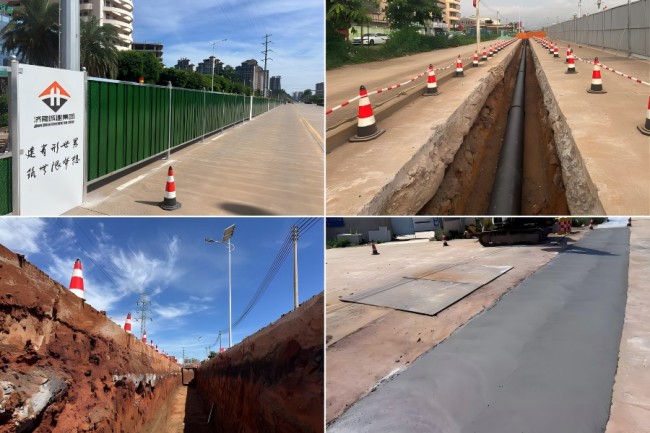 海南澄迈县老城地区供水系统提升工程位于澄迈县老城镇镇区,施工内容为新建给水管网、消火栓及路面恢复,管道总长度约80km;改造32个村居、小区内的供水管道,管道总长度约183km,改造智能水表13487组,合同总额约3.93亿元。项目建成后将切实满足民生用水需求,推动城乡居民生活品质提升,并为高新技术产业园区、工业园区构建用水保障,为营商环境优化与产业升级注入持续动能。目前道路部分已完成乳胶丝路、沿街企业1、欣龙路、南站出口路东侧球墨铸铁管道安装,正在进行美伦路、南站出口路西侧管道施工,龙吉村、道辅村、上吉村、昌盛村、谭颜村、儒林村、美鼎村给水管道施工。
