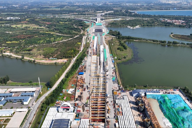 济南市黄岗路穿黄隧道工程全长约5755米,其中隧道段长约4762米,盾构段长约3290米,单洞双层布置。集团主要施工内容包括南北岸隧道明挖段、收费站广场、南北岸接线道路、G309互通立交、综合管线、管理用房、风塔以及其他地面桥梁及附属设施等。项目建成后将有效缓解济南黄河大桥、建邦黄河大桥的交通压力,提升区域交通通达性与便捷性,完善城市北部交通网络布局。目前北岸明挖隧道已完成全部底板、中板施工,正在进行侧墙、顶板施工;G309立交桥已完成14联箱梁施工;北岸接线道路主线施工已基本完成。南岸明挖隧道暗埋段、管线施工已全部施工完成,正在进行敞开段主体结构施工;南岸道路工程正在进行辅道、慢车道以及人行道施工。