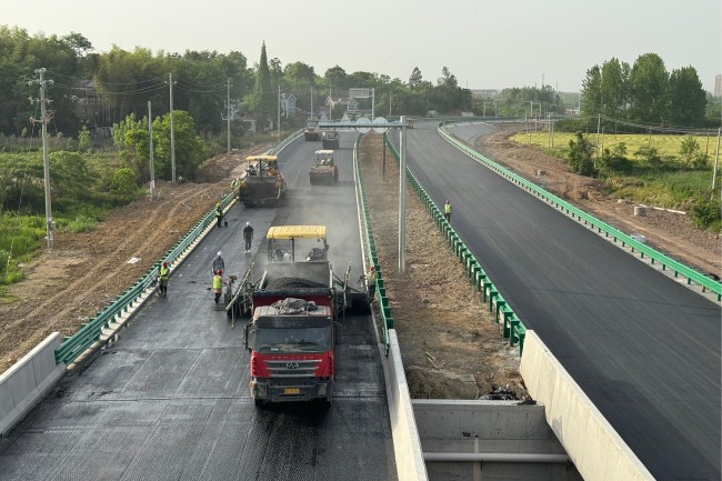 为抢抓国庆节点,项目部管理人员全员在岗,投入10余台专业设备,通过科学排班实现作业无缝衔接、持续推进。施工过程中,团队对各环节精细管控,针对沥青到场温度、摊铺厚度、平整度等关键指标开展实时监测,确保每米路面的平整度误差精准符合设计要求。