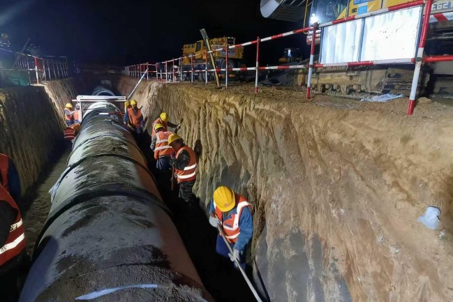 在广东省湛江市中心城区重要点位地下管网更新改造项目一期工程现场,项目建设者已完成金德路与麻遂路交叉口设施设备更新项目350米钢板桩支护、200米DN1650雨水管道安装。项目部通过增加施工人员与机械、利用夜间施工赶进度等方式,积极协调解决柳青路南山涵洞、麻赤铁路的图纸与拆迁问题,为后续进场施工扫清障碍。