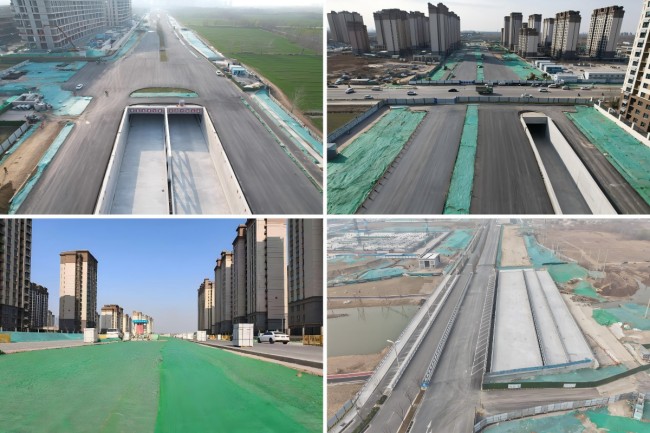 作为区域交通升级的重点工程,黄河大道二期项目自开工以来,始终坚持“质量为先、安全为本、效率为要”的施工要求,统筹推进各项工程建设任务,全力破解建设过程中的各类难题。目前,一标段完成8节敞开段、36节闭合段地道施工,以及快车道沥青下面层、中面层摊铺4.46万平方米,1351米电力结构施工,2964米雨污水管线施工。二标段完成71节闭合段地道施工,污废水泵房1处,一体化泵站1座,其中大寺河桥、东支流桥及桥下U型槽主体结构已施工完成。