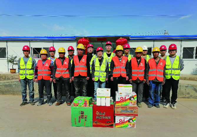 志愿者成员对所有参加活动配属队伍代表严格排查,进行体温检测并检查健康码,确保队伍代表人员无发热发烧、非高风险地区返济。随后为劳务人员分发口罩、消毒水等防疫物资,并为他们送上了泡面、火腿肠等生活食品。要求各队伍负责人高度重视日常防疫及安全措施落实,提升防控及安全责任意识,做好告知工作,在保证身体健康的前提下全心全意投入项目建设。物资分发结束后,志愿者对项目部办公、生活区域进行了通风消杀。