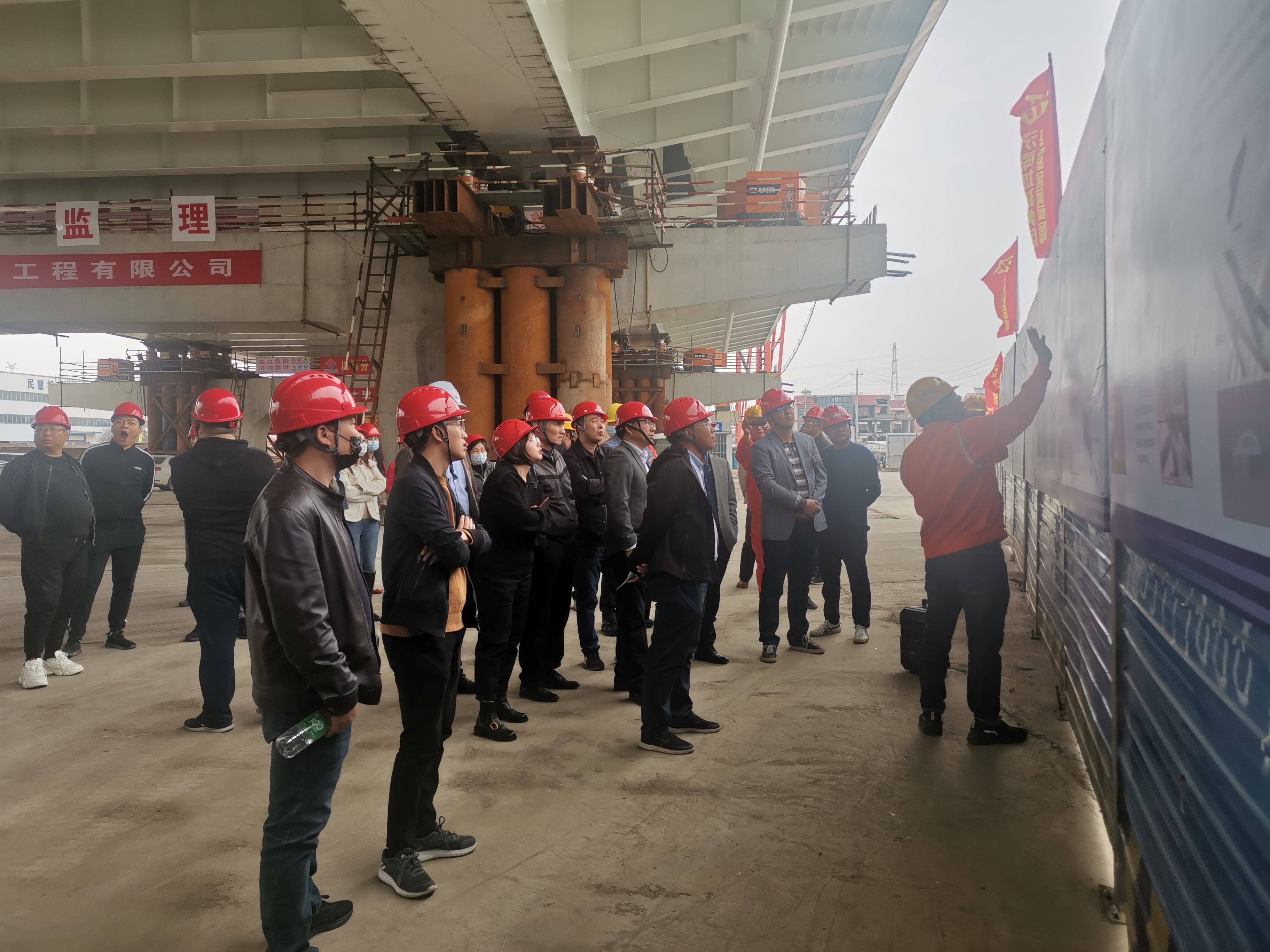 近日,泰州市城投建设工程有限公司党总支组织相关单位到六分公司新通扬运河桥施工现场进行顶推工艺技术观摩交流。城投各支部党员代表及项目负责人合计50余人参加了活动,同时项目部邀请了泰州市土木建筑协会道路桥梁专业委员会专家加活动。