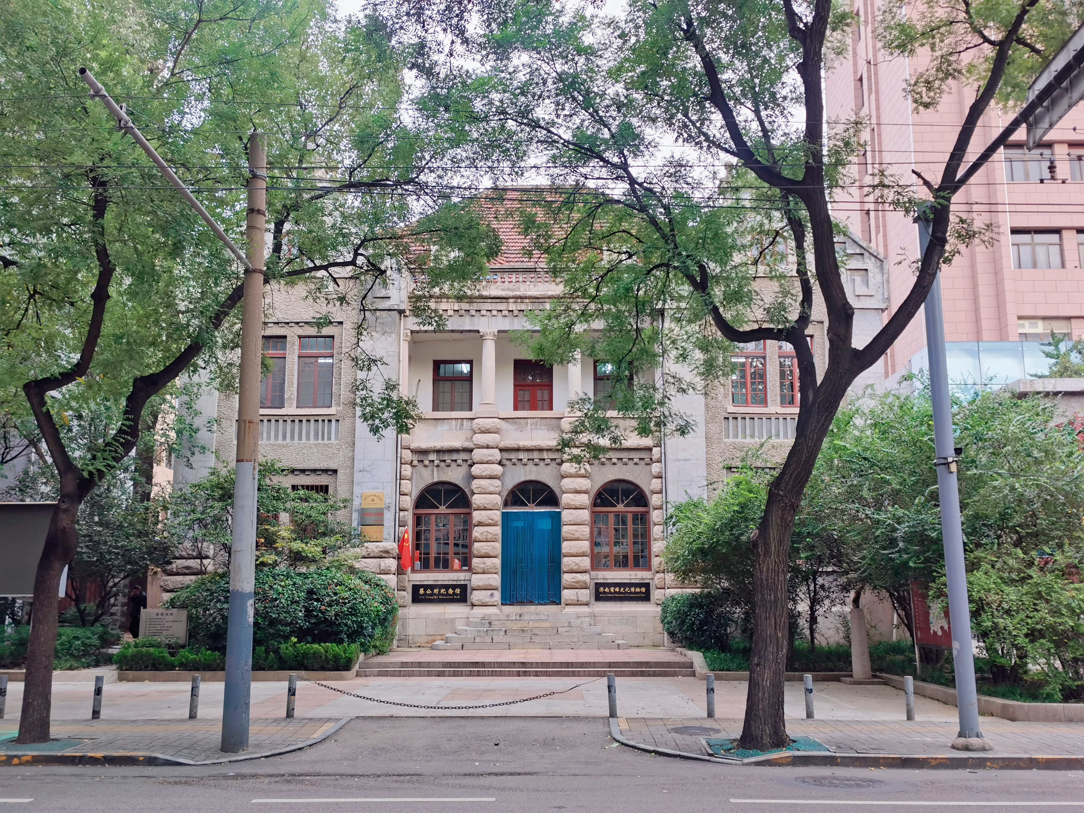 这里曾是原国民政府驻山东济南交涉公署特派员办事处旧址,是蔡公时烈士的殉难地,是济南“五三惨案”重要纪念地之一,也是中国近代史中具有重大历史教育意义的近代建筑遗存,记录着那段屈辱历史。蔡公时,字以行,江西省九江市,早年留学日本,时任国民政府战地政务委员兼外交处主任、山东交涉员,是现代中国第一位抗日烈士,在1928年春在震惊中外的“五·卅惨案”中遇难,其所在的山东外交交涉员公署即其殉难地。1928年5月1日拂晓,北伐军第四军团攻占济南,为维护日本帝国在山东的既得利益,日本以保护华侨为名,派兵进驻济南、青岛及胶济铁路沿线。日本第六师团福田彦助率部从青岛增兵济南,与日军和日本浪人组成的“日本义勇团”一起,在市内各街区构筑工事、架设电网、阻挠中国军队,日寇的暴行激怒了中国人民。由于蔡公时具有卓越的外交才干,又精通日语、深谙日情,临危受命领衔“山东交涉专员”,日本政府借口保护在山东的侨民,悍然出兵济南,蔡公时代表国民政府出面调停,然而日军继续武装挑衅。1928年5月3日,日军闯入山东交涉公署,肆意凌辱驻济中国外交人员。蔡公时大义凌然痛斥日军,被日军枪杀,其随员除一人剪短绳索侥幸出逃外,其余17人均被杀害。日军纵火焚烧了山东交涉公署。